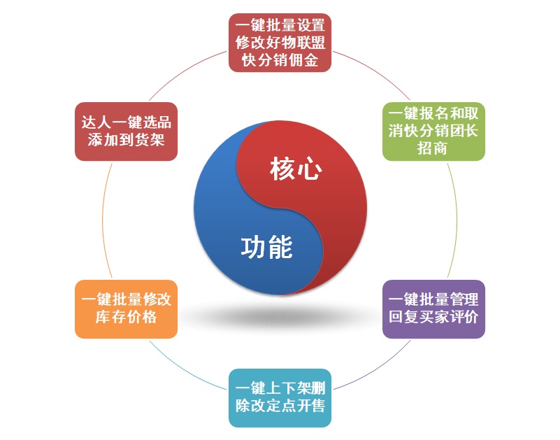 《千鱼快手小店优化助手》20/月,180/年,一键设置快分销计划,团长招商报名和取消,回复评价,上下架删除改预售库存价格,达人添加商品到货架